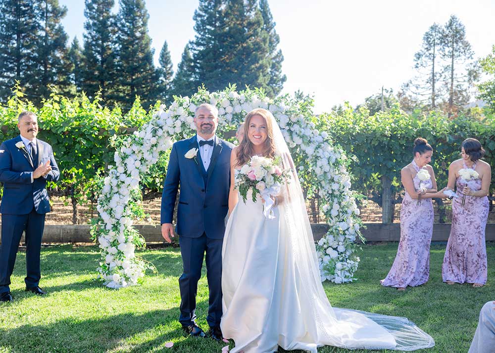 The ceremony took place overlooking the vineyard, framed by vines and soft Sonoma County light. Everything about it felt intentional and sincere.